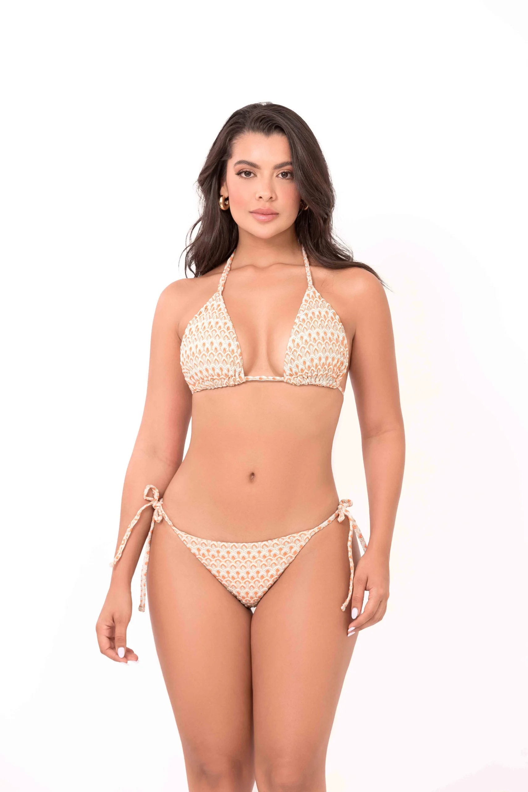 Bikini triangulo asoleador, tela tipo encaje, copa removible en poliéster