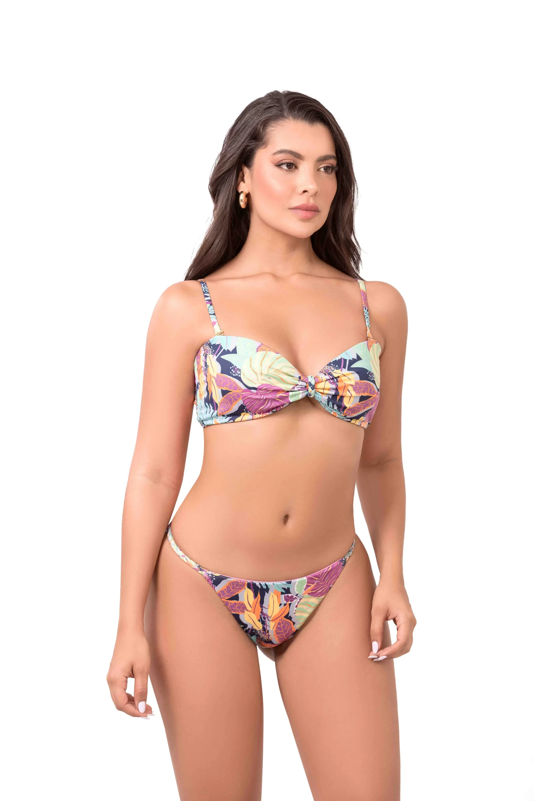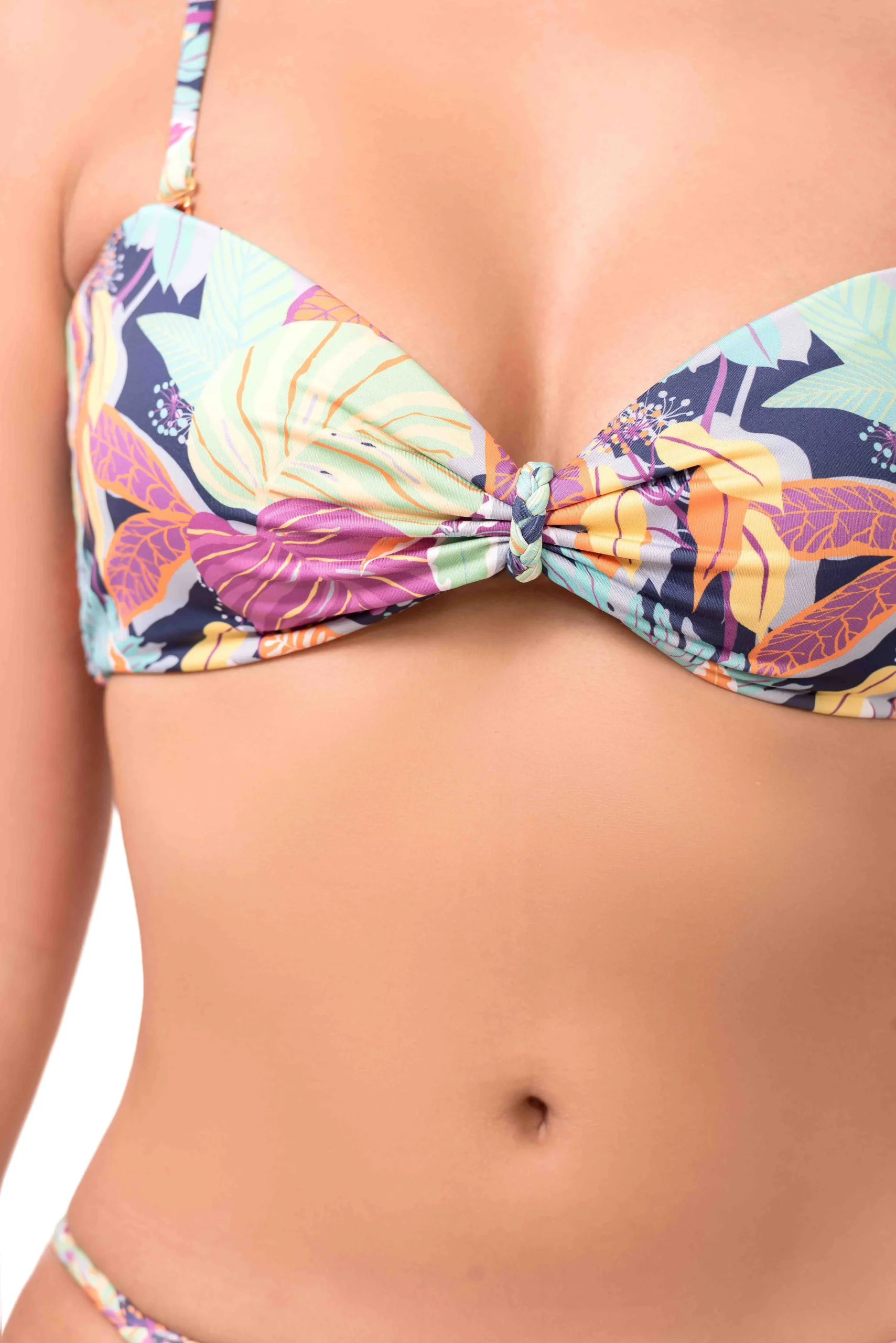 Bikini Straple estampado, copa removible, detalle en trenza, correderas ajustable
