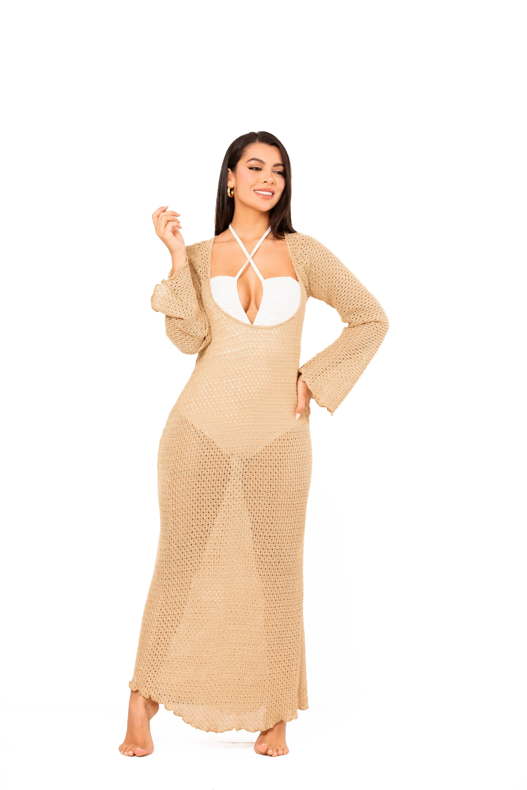 Salida de baño, vestido, tejido artesanal. Doble forma de uso